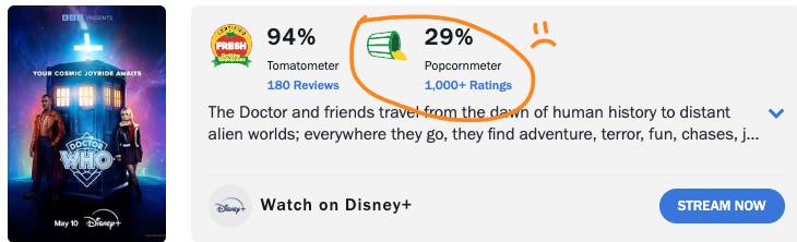 In the last ten years, Disney has flooded the market with twelve Star Wars films, seven live-action TV shows, and six animated series. Paramount did the same with Star Trek, pumping out two prequel series, two cartoons, and a legacy series that no one liked until season 3 (Star Trek: Picard). In a desperate attempt to catch up to Marvel and Star Wars, for Doctor Who’s (very tired) 60th anniversary, the BBC created the "Whoniverse" to pave the way for upcoming franchise spin-offs. Yay? In addition, the BBC handed a piece of Doctor Who over to Disney, giving the creatively bankrupt behemoth "creative input."